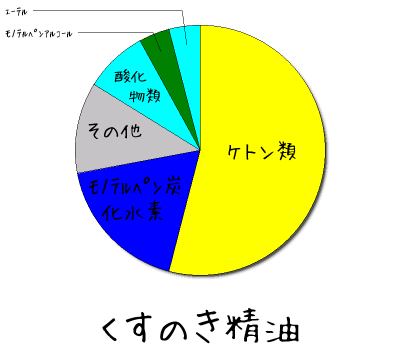 シネオール18は免疫調整、α-ピネンは強壮、リモネンは蠕動運動(腸の動きを活発にする)、テルぺネン4-olは副交感神経強壮があり、他抗炎症、鎮痛作用などがあります。